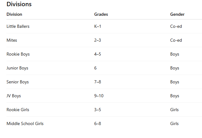 Have a coach and a roster ready? Register your team. All teams are guaranteed 10 games plus a single-elimination playoff to determine league champions.